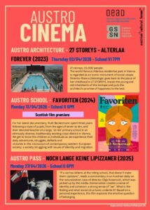 The University of St. Andrews’ OeAD-Lektorin, Verena Latschbacher, is organising a wonderful showcase of Austrian cinema in St Andrews, offering audiences a valuable opportunity to experience contemporary and classic films from Austria. A particular highlight of the showcase will be the Scottish premiere of Ruth Beckermann’s Favoriten! Stay tuned into GSSN social media for further information and reminders! All the screenings are generously supported by the Austrian Cultural Forum.